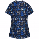 Taliowana bluza medyczna damska. Krótki rękaw, dekolt w kształcie V, dwie boczne kieszenie.