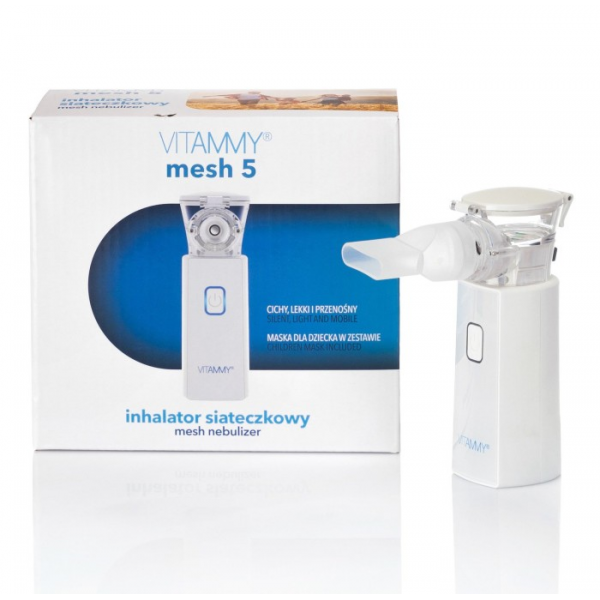 Cichy, lekki i przenośny nebulizator dla dzieci i dorosłych VITAMMY Mesh 5. Dzięki niskiej wartości rezydualnej lek jest dozowany oszczędnie i wydajnie. Ten wyjątkowo łatwy w obsłudze inhalator, idealnie nadaje się do użytku domowego. Jest zgrabny i lekki dzięki czemu bez trudu można go zabrać ze sobą w podróż.