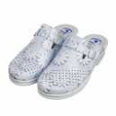 Obuwie damskie wykonane z najwyższej jakości materiałów. Cholewka skórzana zabezpieczona powłoką PU, która umożliwia czyszczenie i dezynfekcje. Wyściółka skórzana ze skóry naturalnej impregnowanej środkiem bakterio i grzybobójczym podklejona pianką latex z dodatkiem węgla aktywowanego. Cholewka z regulacją tęgości. Spód antypoślizgowy na koturnie 4 cm.
