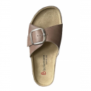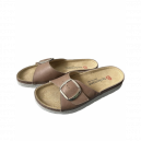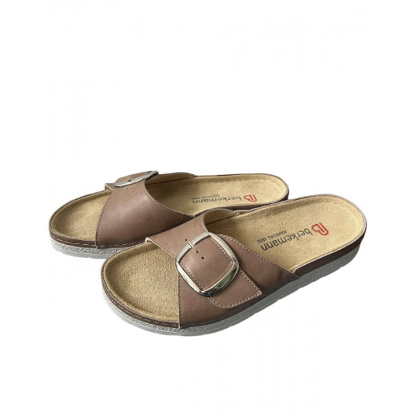 Klapki wykonane ze skóry naturalnej z zamszową wyściółką. Posiadają pasek zapinany na klamrę (regulacja tęgości). Podpierają wysklepienie podłużne i poprzeczne stopy. Amortyzują wstrząsy powstałe podczas chodzenia oraz odciążają kręgosłup i stawy. Podeszwa lekka elastyczna nie ślizgająca się.