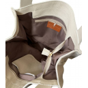 Skórzana damska shopperka wykonana z miękkiej skóry. Torba jednokomorowa z dodatkowymi przegródkami i kieszonkami w środku. Posiada zapinaną kieszeń na zewnątrz.