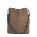 Skórzana torebka średniej wielkości. Jednokomorowa zapinana na zatrzask. Posiada krótką rączkę oraz odpinany długi pasek.
