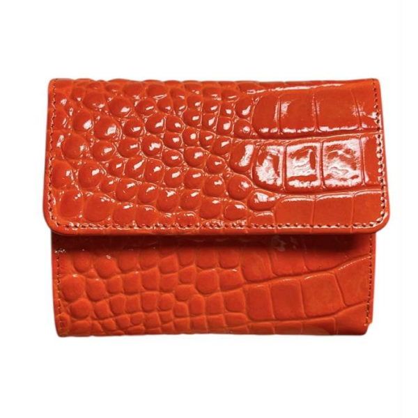 Skórzany mały portfel damski. Zapinany na zatrzask. Podwójna przegródka na banknoty i mniejsze na karty kredytowe. Osobna kieszonka na monety zapinana na zatrzask.