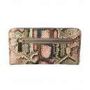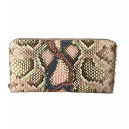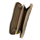 Skórzany duży portfel damski. Zapinany na zamek. Podwójna przegródka na banknoty i mniejsze na karty kredytowe. Osobna kieszonka na monety. Dodatkowa zewnętrzna kieszeń zapinana na zamek.