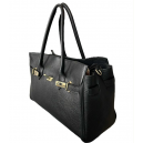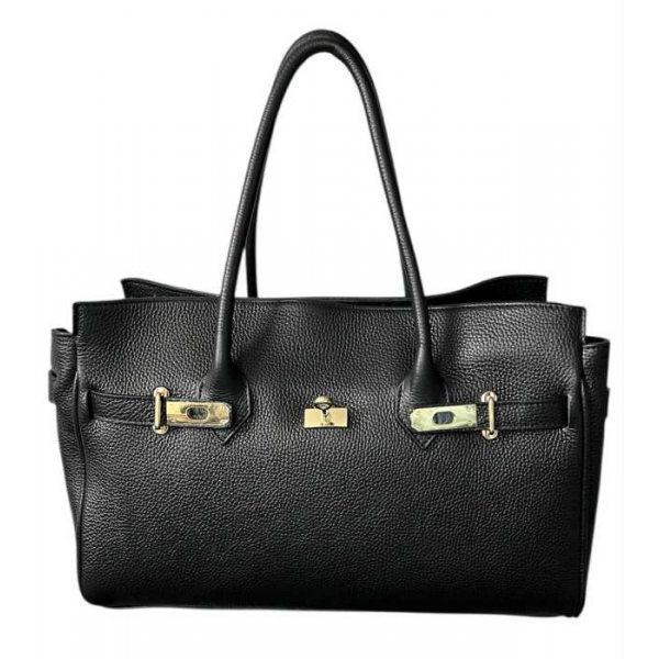 Skórzana torebka z krótkimi rączkami i dodatkowym odpinanym paskiem. W środku przegródki i kieszonki. Torba zapinana na zamek.
