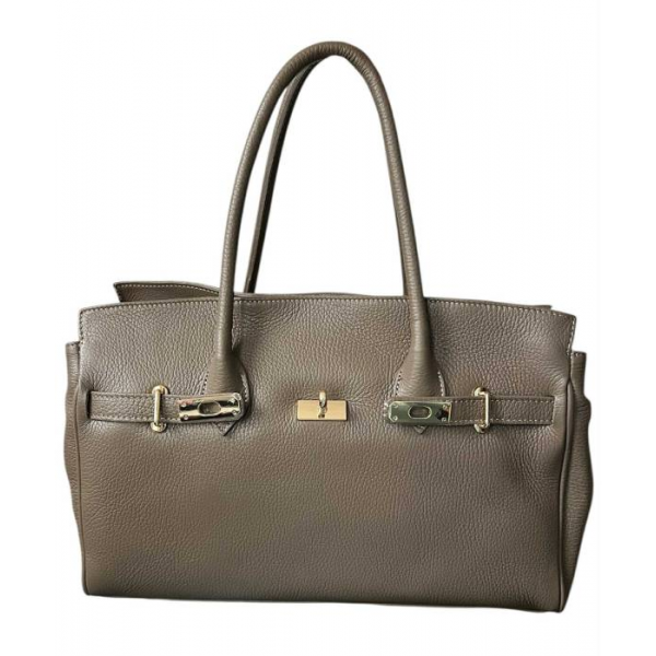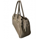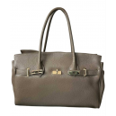 Skórzana torebka z krótkimi rączkami i dodatkowym odpinanym paskiem. W środku przegródki i kieszonki. Torba zapinana na zamek.