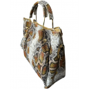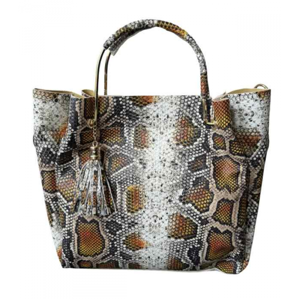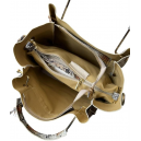 Skórzana torba typu shopper. Jednokomorowa zapinana na zamek. Dodatkowo torebka posiada wyjmowaną kosmetyczkę środku zapinaną zna zamek. Torebka ma krótkie i długie rączki.