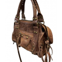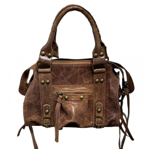 Skórzana torebka średniej wielkości. Krótkie rączki i dodatkowy długi odpinany pasek. Dodatkowe kieszonki na zewnątrz torebki. W środku jednokomorowa z przegródkami i kieszonkami.