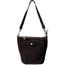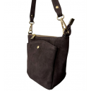Skórzany mini worek. Torba jednokomorowa z dodatkowymi przegródkami z przodu i z tyłu torby. Posiada krótką rączkę i odpinany długi pasek.