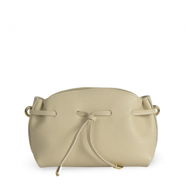 Mała skórzana torebka. Jednokomorowa zapinana na zamek. Posiada długo odpinany pasek.