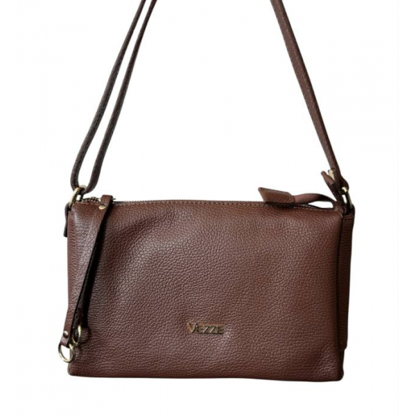 Skórzna listonoszka trzykomorowa zapinana na zamek. Posiada odpinany długi pasek.