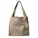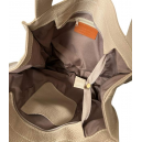 Skórzana damska shopperka wykonana z miękkiej skóry. Torba jednokomorowa z dodatkowymi przegródkami i kieszonkami w środku. Posiada zapinaną kieszeń na zewnątrz.