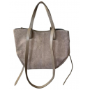 Skórzana torba typu shopper. Jednokomorowa zapinana na zamek. Dodatkowo torebka posiada wyjmowaną kosmetyczkę środku zapinaną zna zamek. Szerokość regulowana za pomocą zatrzasków. Torebka ma krótkie i długie rączki.
