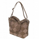 Skórzany shopper wykonany z plecionej skóry zamszowej i naturalnej. Torebka ma krótkie rączki i dodatkowy odpinany pasek. W środku jednokomorowa z przegródkami i kieszonkami.
