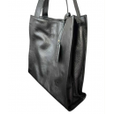 Skórzana damska shopperka wykonana z miękkiej skóry. Torba jednokomorowa z dodatkowymi przegródkami i kieszonkami w środku. Posiada zapinaną kieszeń na zewnątrz.