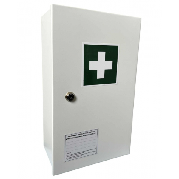 Stalowa apteczka ścienna "40" przeznaczona do zakładów przemysłowych, biur, szkół, instytucji itp.