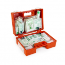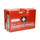 Przenośna apteczka w postaci walizeczki z tworzywa sztucznego. W razie potrzeby apteczkę można zawiesić, używając do tego specjalnego wieszaka.